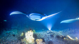 The Manta Ray tourist attraction started years before, purely by accident. An oceanside resort had its outdoor lights shining into the water at night and local divers, spotting Manta Rays at that location reasoned that the lights were attracting them. In fact, the lights were attracting plankton, upon the rays feed, and once this was established the Manta Ray concession was born.