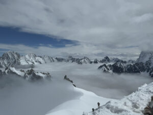 This was a great orientation for those of us who had not experienced extreme altitude before and made believers out of all of us. Those of us who thought that we should be attempting the Tour de Mont Blanc (TMB) – 10 continuous days of hiking and bivouacking at elevation- may have lost some of their ardor as we all felt the increased difficulty breathing and keeping our balance.