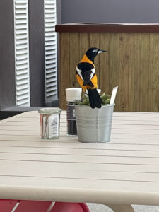There were three restaurants on the property, if one includes the bakery/pizzeria where one could (as we did) have a light breakfast at 7 a.m. or a sandwich or pizza throughout the day. The two other restaurants were by the water, serving a fuller menu. Downstairs, on the water served all three meals and was considered “fine dining” and the second-floor restaurant housed a bar and served lighter “pub fare”. We had our lunches – after diving – on the second floor; our dinners downstairs by the sea. Reservations were required.