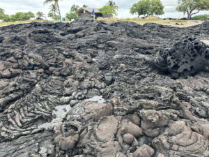 Our first adventure on Hawai’i was driving to the opposite side of the island, where we planned to spend our first three days. To get there we had to drive the Saddle Road which bisects the island and its active volcanoes. Imagine driving through a desert, mountains in the distance (volcanic steam rising on both sides), except the desert floor is not sand, but blackened lava. The rain was blowing sideways, so we did not stop for photos, but it was an eerie introduction to this “island paradise”. It looked more like Dante’s Inferno. It looked a lot like the floor of a volcanic crater, something we would experience in coming days.