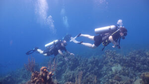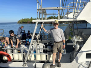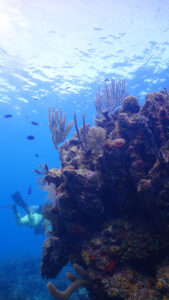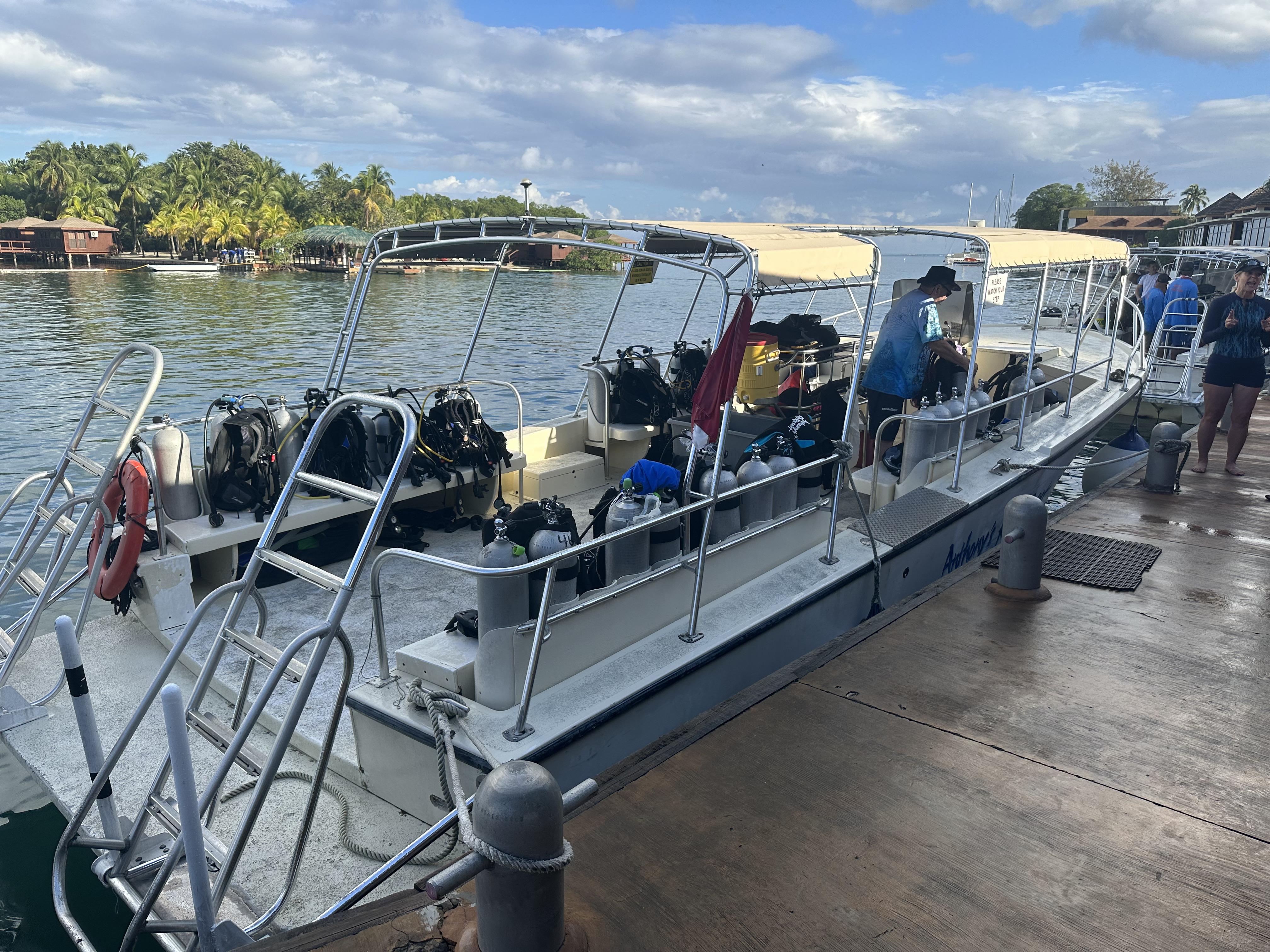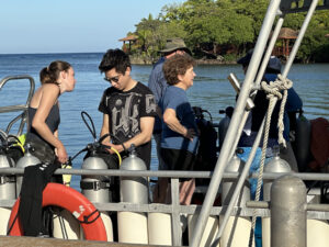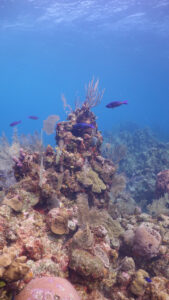Unlike many dive resorts, most of the dive sites we ventured to were within a 5-10 minute boat ride from our base at AKR. Most of our dive time was spent underwater, not in a boat motoring to a distant reef. We were also fortunate that the Roatan dive sites fall under the authority of the Roatan Marine Park, which has spent a lot of energy and dollars in efforts to protect and rebuild the underwater environment. For example, they do not allowed dive contractors to drop anchor at any of the dive sites. Instead they have installed permanent moorings at each dive site, available to any dive boat that wishes to explore there. This greatly reduces damage causes by anchor drops.