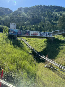 We took the cog railway back down to Chamonix, but most of our group opted to hike back to town. Reportedly it was a surprisingly steep trail down. Near the bottom, a couple of our group rode a luge course. The result can be seen in the video at the bottom of this page.