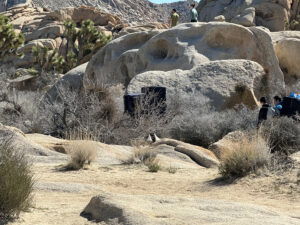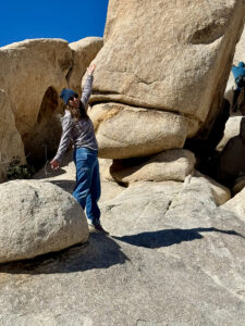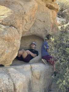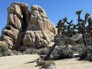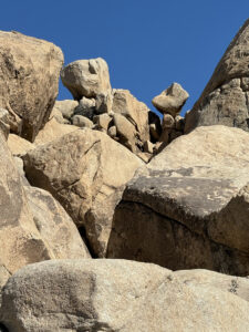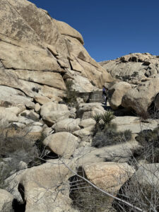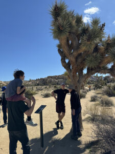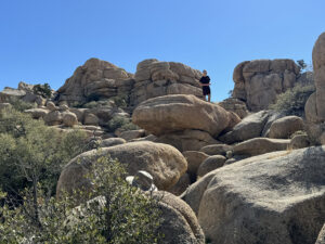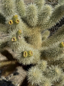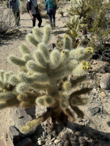 We started the day on the Barker Dam Trail, which featured a dam (in a dried up riverbed) and petroglyphs. We were becoming used to seeing amazing rock formations that were everywhere, many on which our grandsons were climbing. Afterward we drove to an area at a lower elevation where Cholla (jumping cacti) were flourishing.