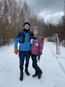 Nothing short of an Olympic training regimen could have prepared us for our February 1 cross-country skiing adventure however. The trip spanned 4 days, 28 miles of trails which connected 3 huts managed by the Maine Huts and Trails organization. We had great conditions and plenty of snow, deposited by a blizzard the week before. The Maine woods were beautiful and we learned a lot… but the skiing was surprisingly hard. We encountered some incredibly steep climbs. There were times that we both thought we might not be able to make it to the next hut.
