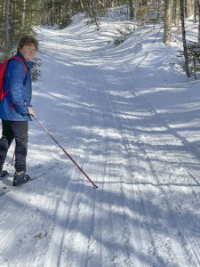 We were fortunate to have a good depth of snow and well-maintained trails to ski. Some of the climbs were daunting, but we should have expected that, being in the mountains. On the second day, once we navigated the steep descents we were privileged to ski the Narrow Gauge Pathway, an old rail bed that is maintained by the town of Carrabassett Valey. It was largely flat with tracks available for skiers. (Most of the time we skied undulating – or steep – groomed trails without tracks.) On our third day we skied an 11-mile route that featured a steady climb to a yurt midway to the next hut. The yurt provided a great rest stop and had a wood stove and firewood that was cut and split, ready to light. Better yet, the trail was mostly a mild downhill from there to the third hut. Despite some rigors, it was a pleasure being able to share this winter wonderland.