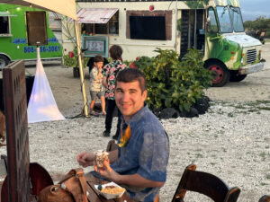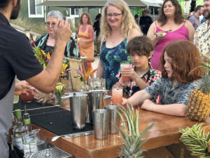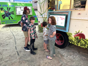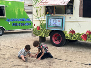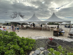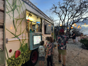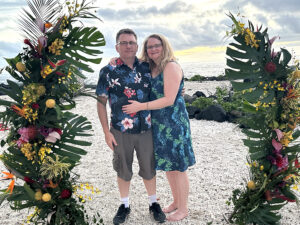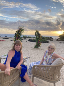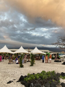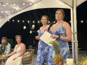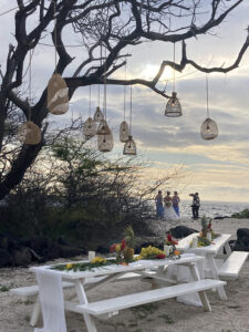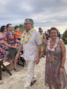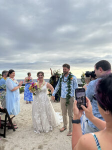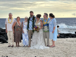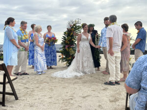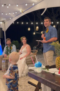 Our hosts provided 4 food trucks with various types of food, as well as an open bar with tropical drinks, alcoholic and non-alcoholic. Hawaiian music accompanied the reception, and as the sun went down, our son, Wyatt, and Siobhan’s sisters offered toasts to the newlyweds.