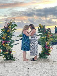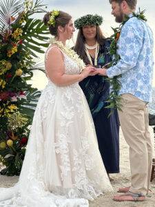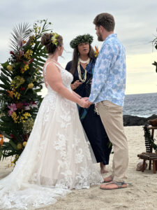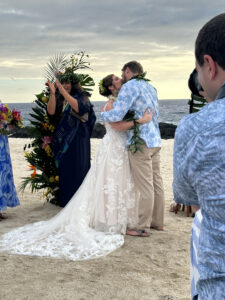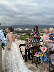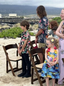 The wedding ceremony was not a boilerplate affair. The woman who officiated made an effort to explain the many Hawaiian customs that were integrated into the ceremony, creating a warm, personal mood and an understanding of local culture. The bride was radiant; the setting was perfect; the vibe from those in attendance was positive and supportive. Even the children appeared to be enjoying the moment.